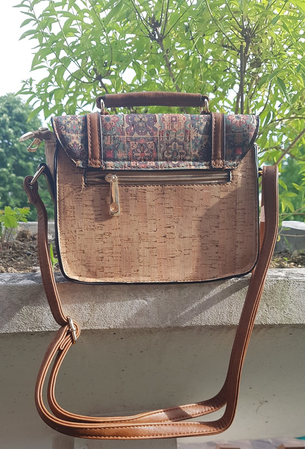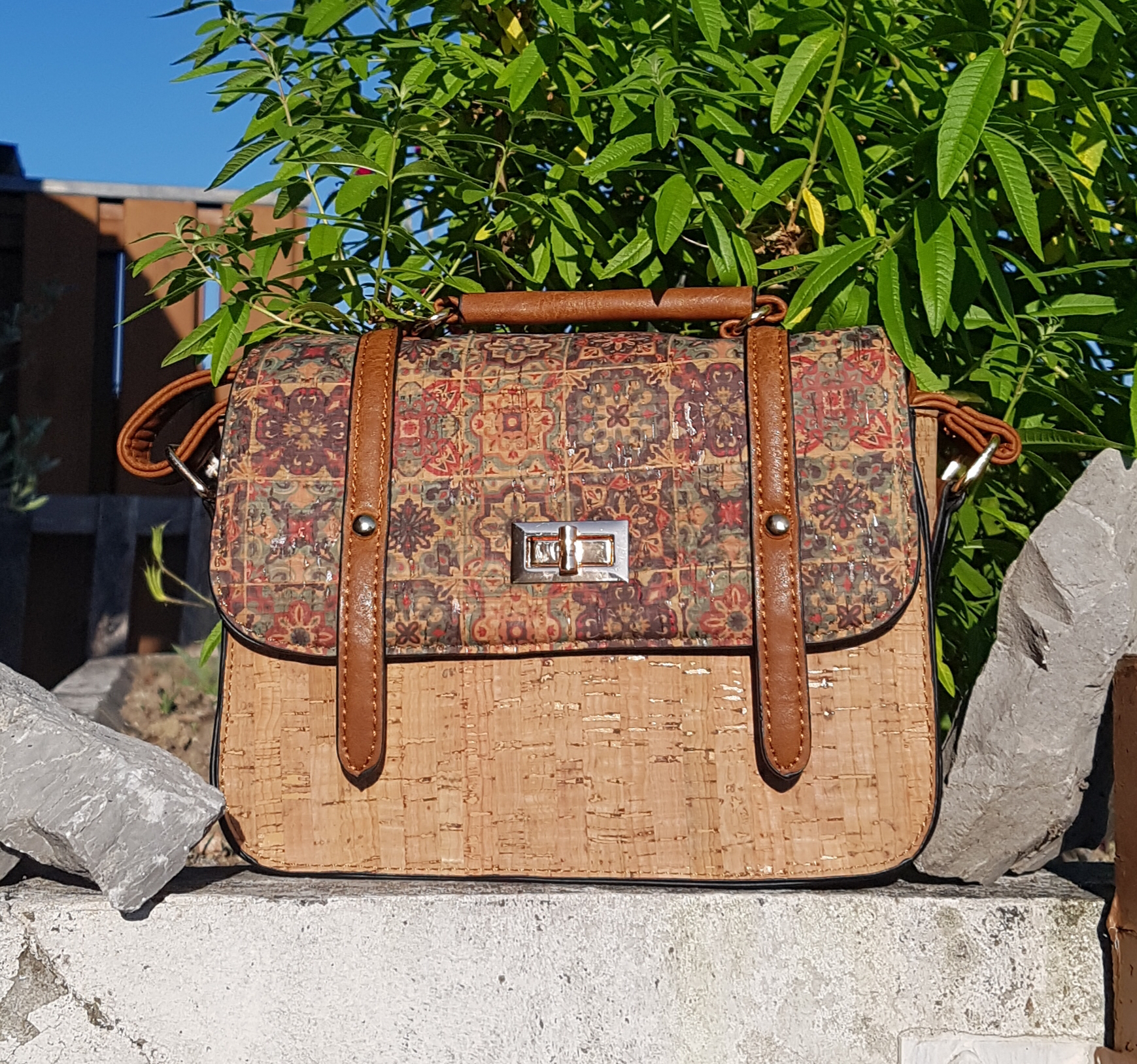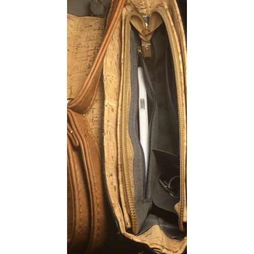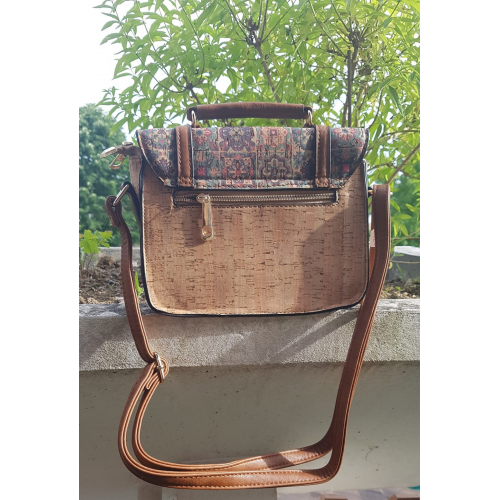 Sac à main à porter croisé, à lépaule ou à la main. Sa forme "cartable" lui donne un côté très original. Sac en liège uni et liège imprimé sur le rabat.