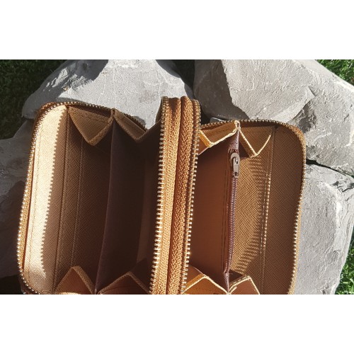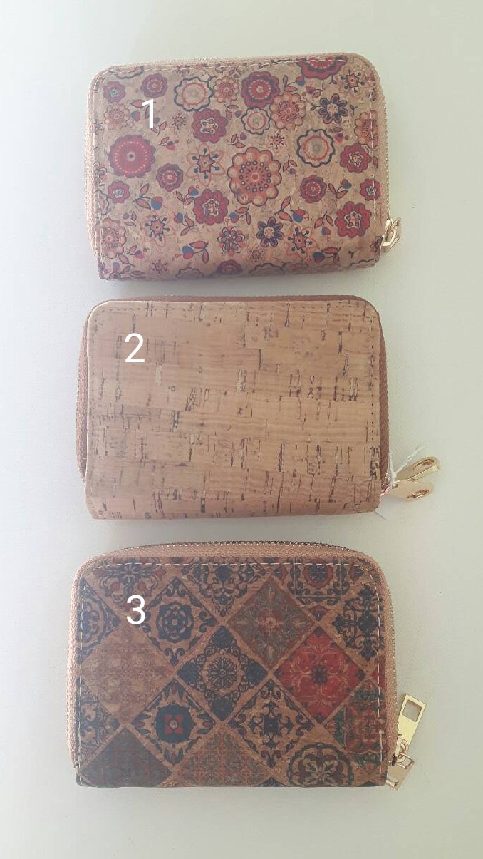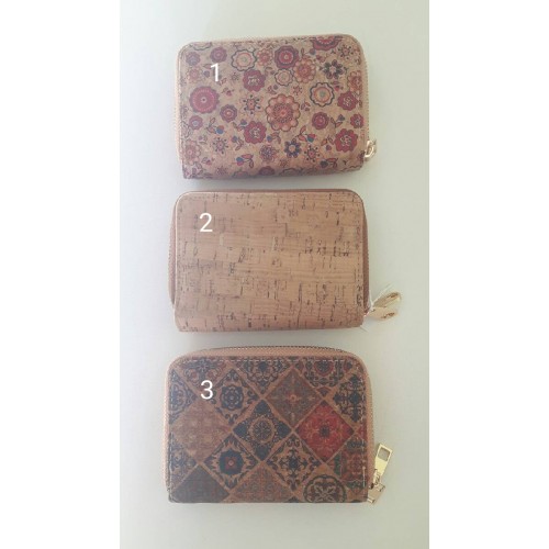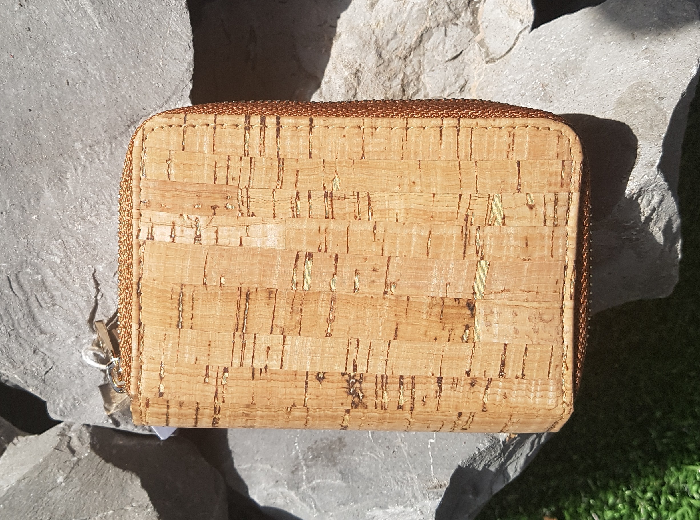 Portefeuille double en liège naturel ou imprimé avec 2 fermetures zippées