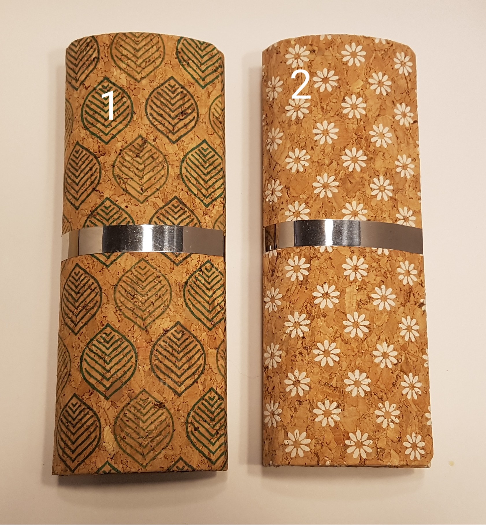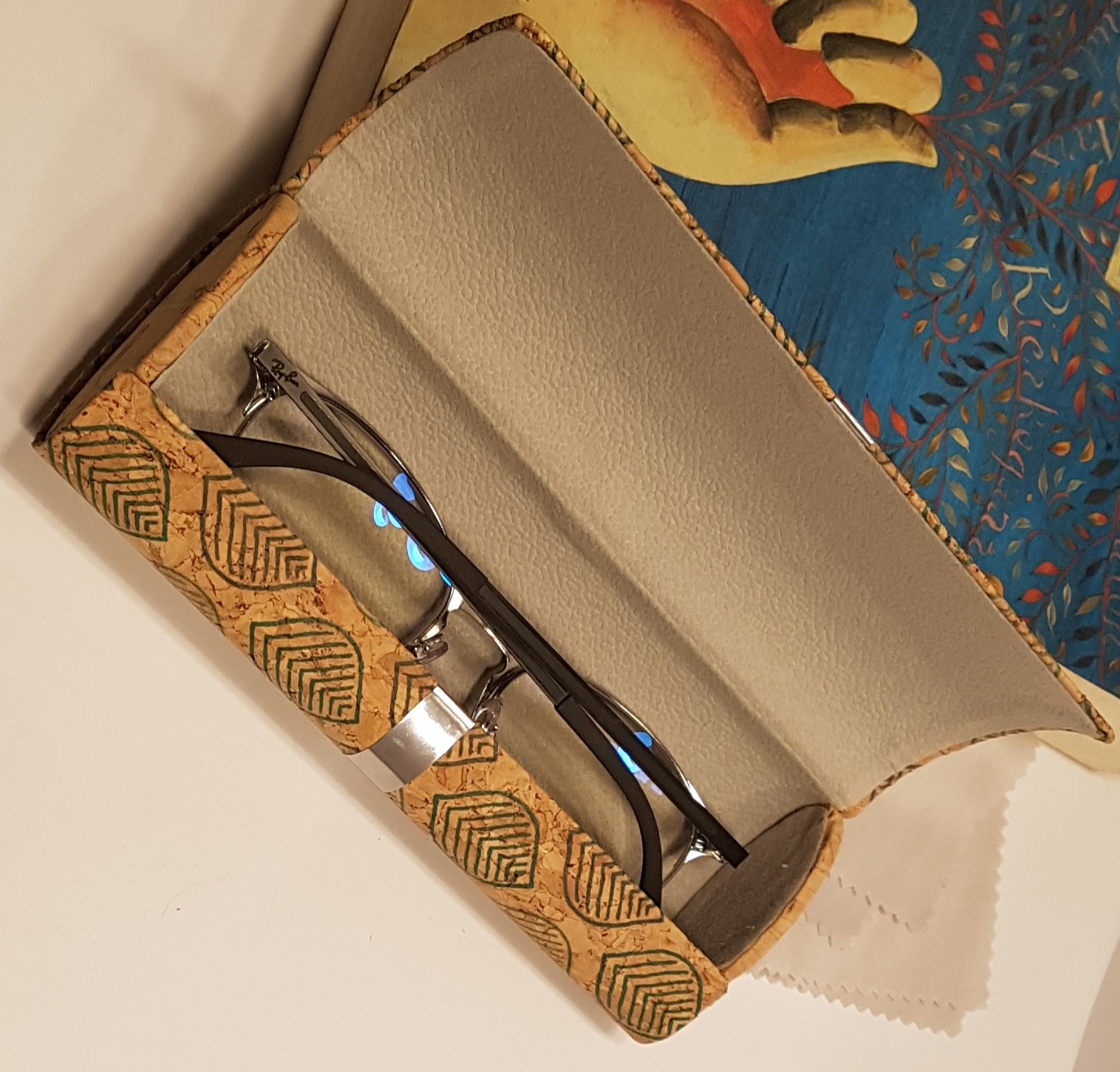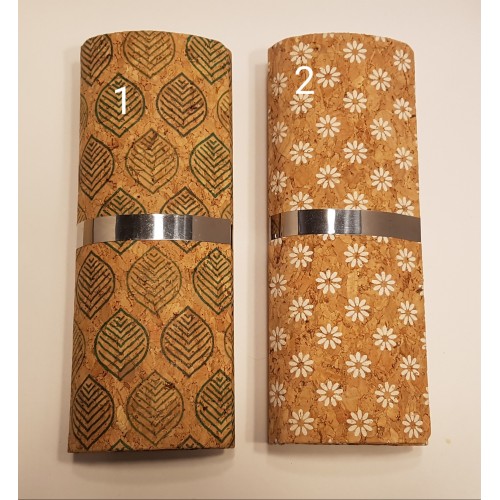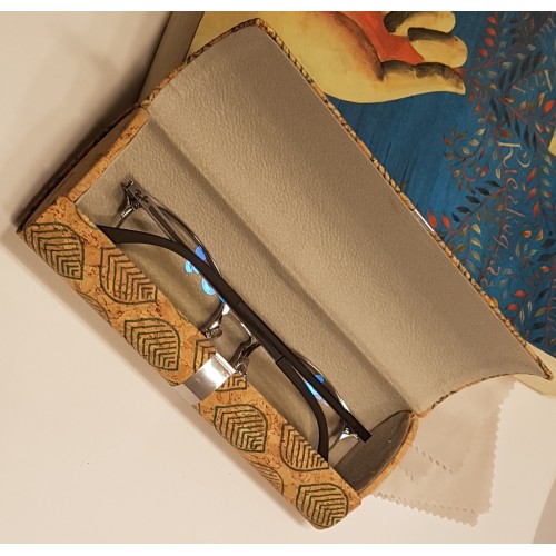 Etui à lunettes rigide en liège imprimé, forme ovale sur le côté