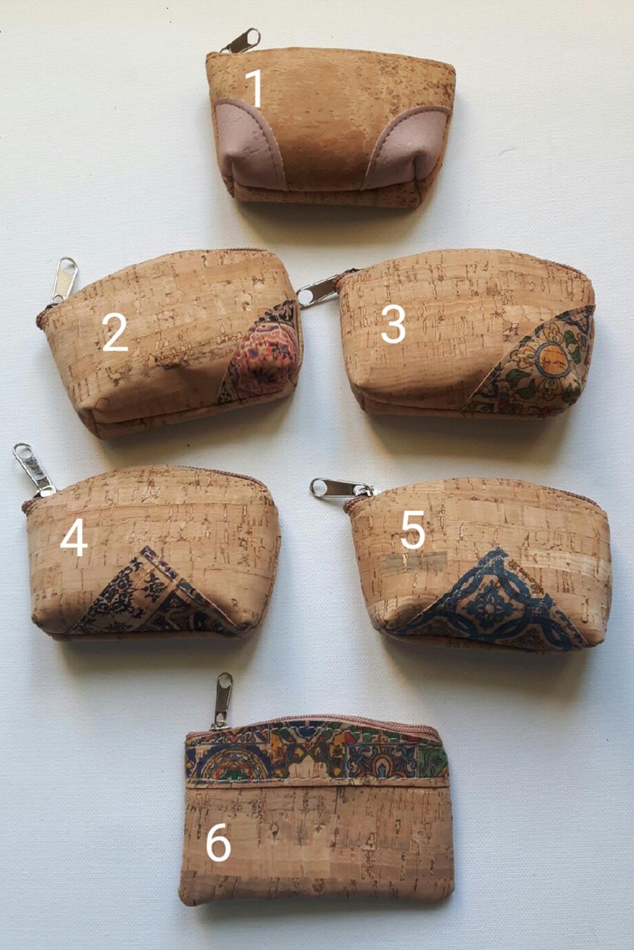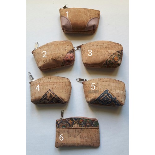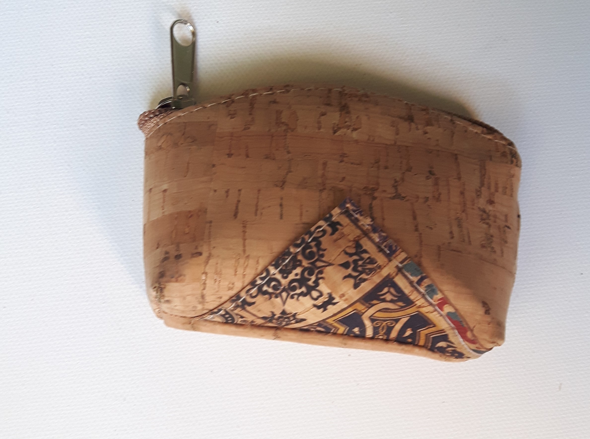 Porte monnaie en liège naturel avec un petit empiècement en liège imprimé