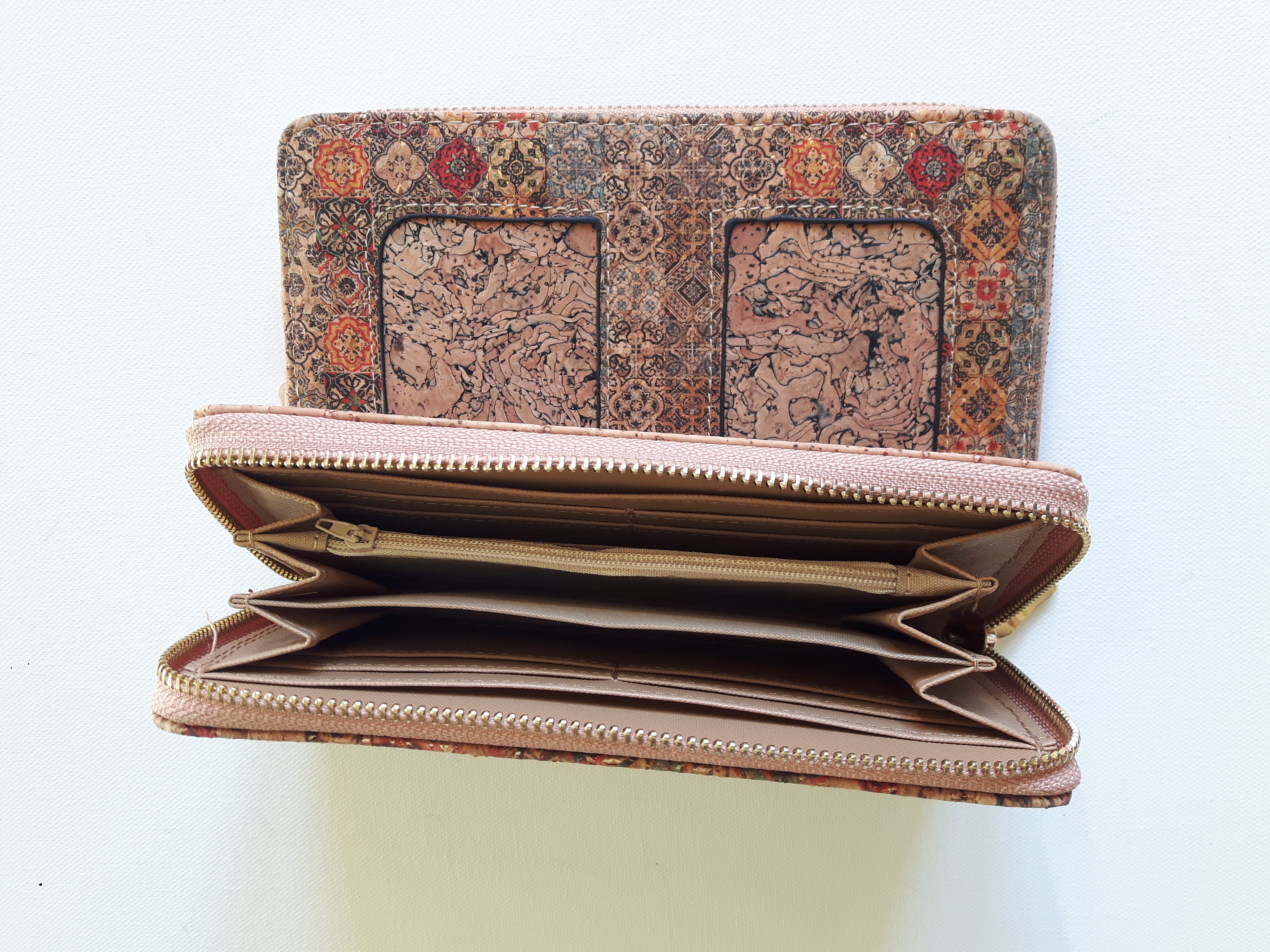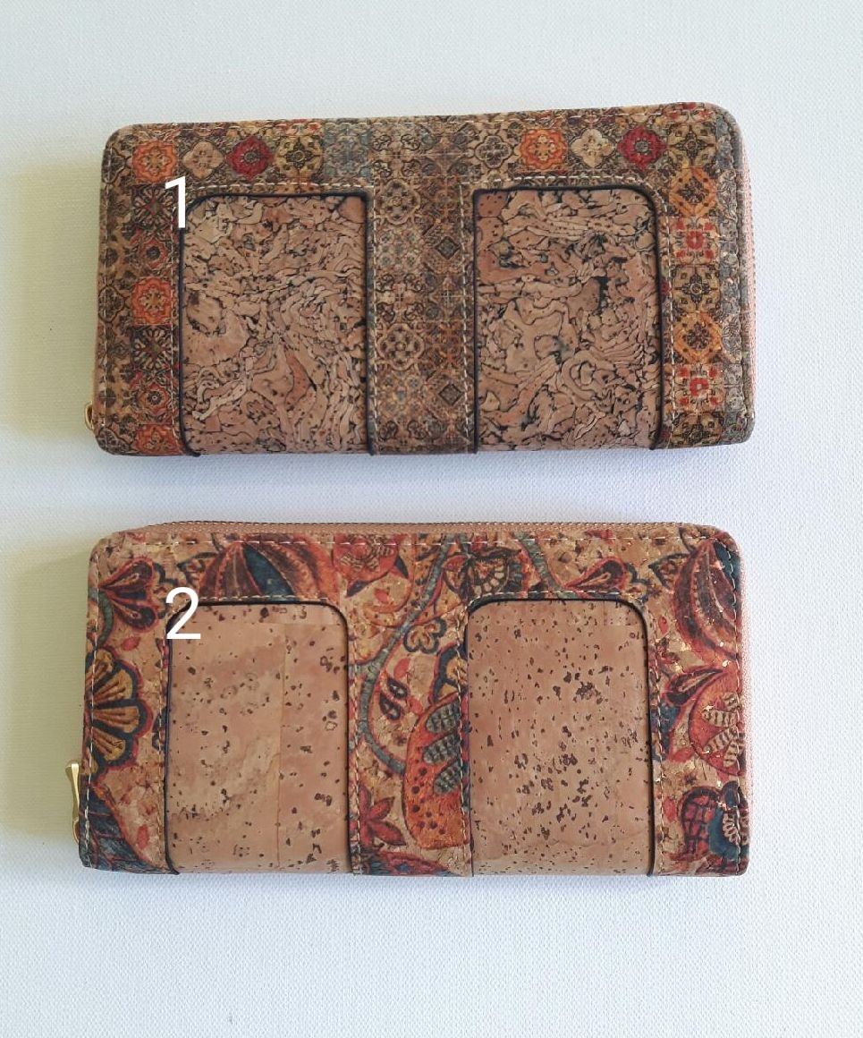 Portefeuille en liège naturel et liège imprimé .