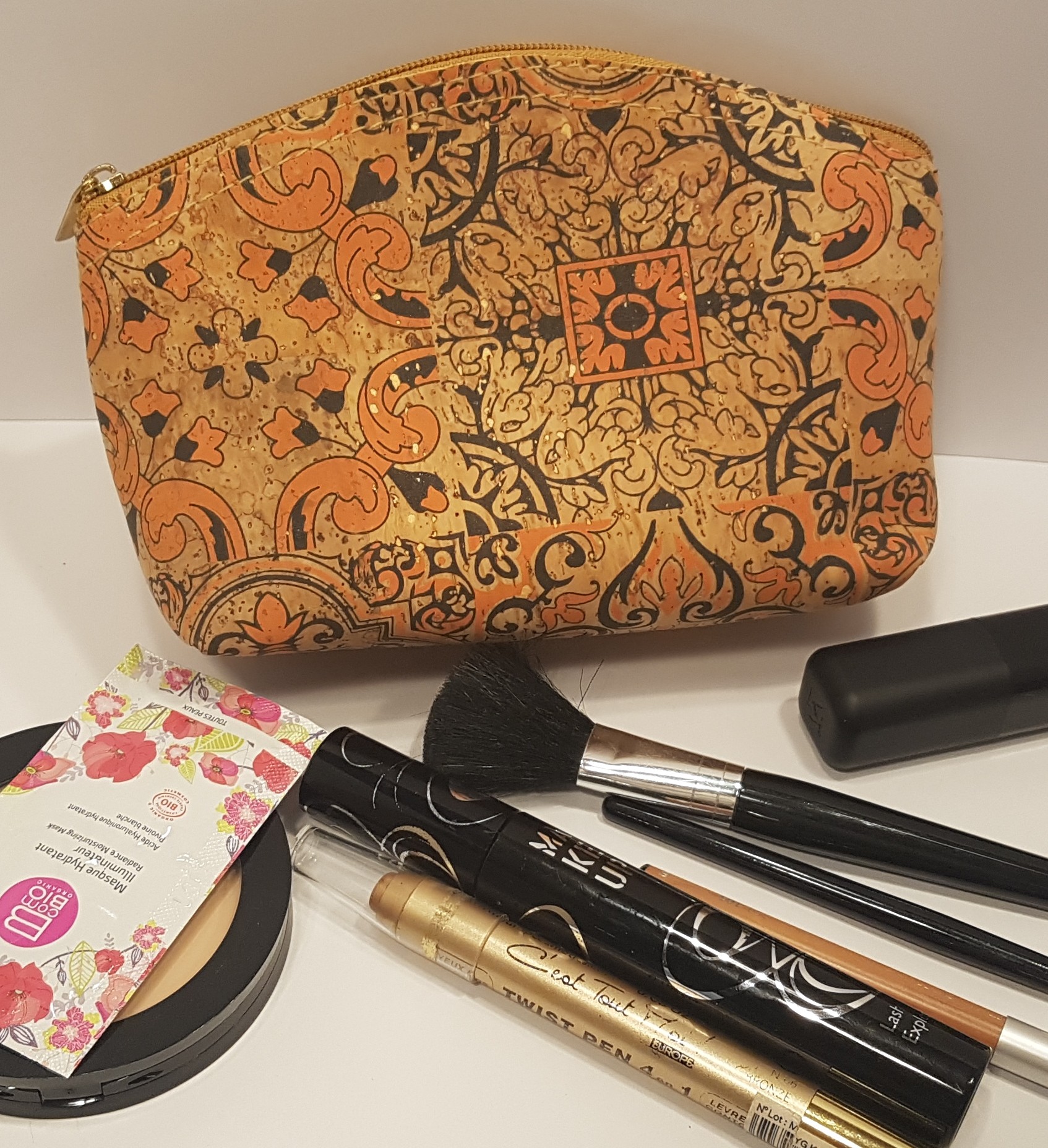 Petite trousse imprimé sur le devant et liège naturel derrière