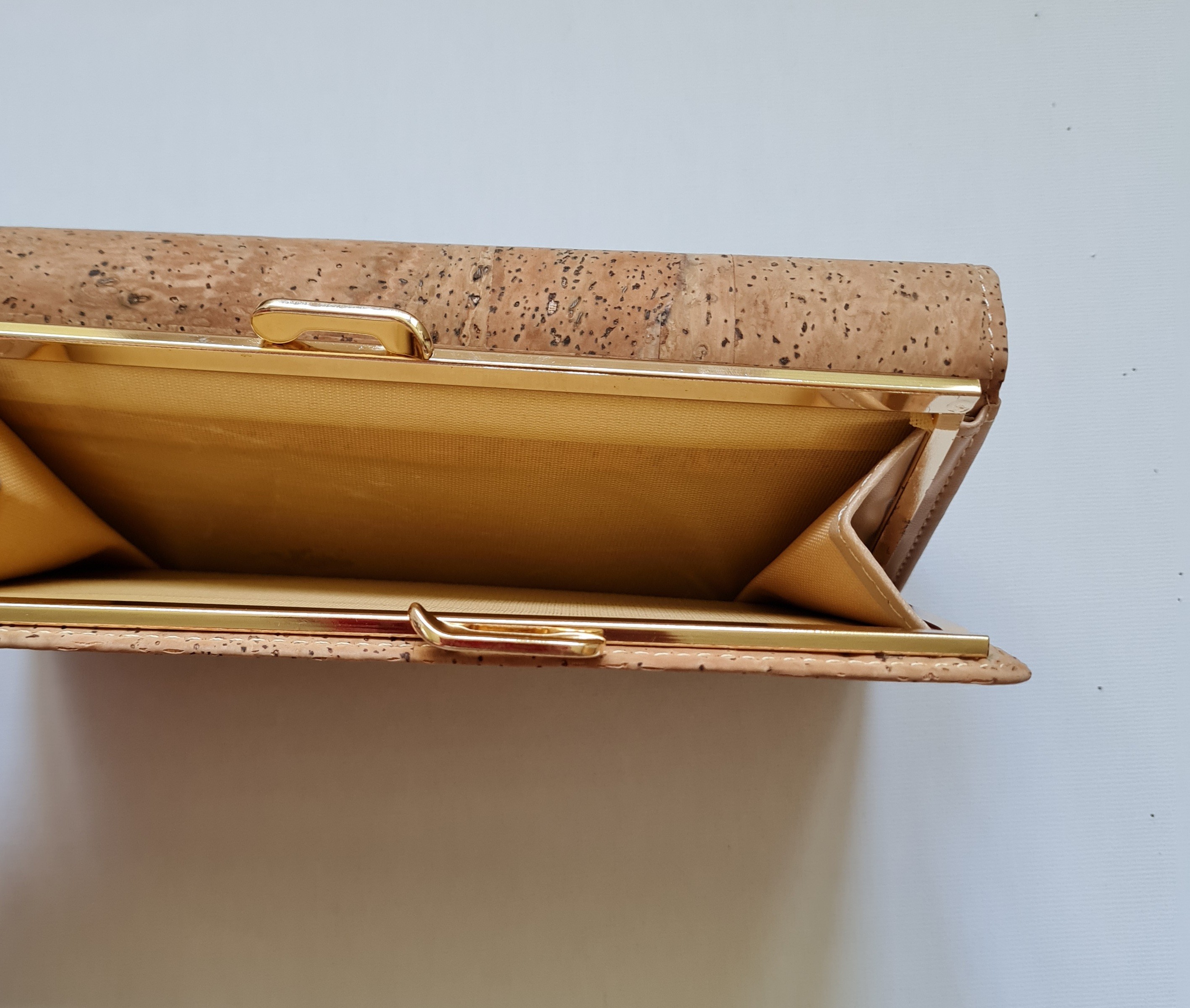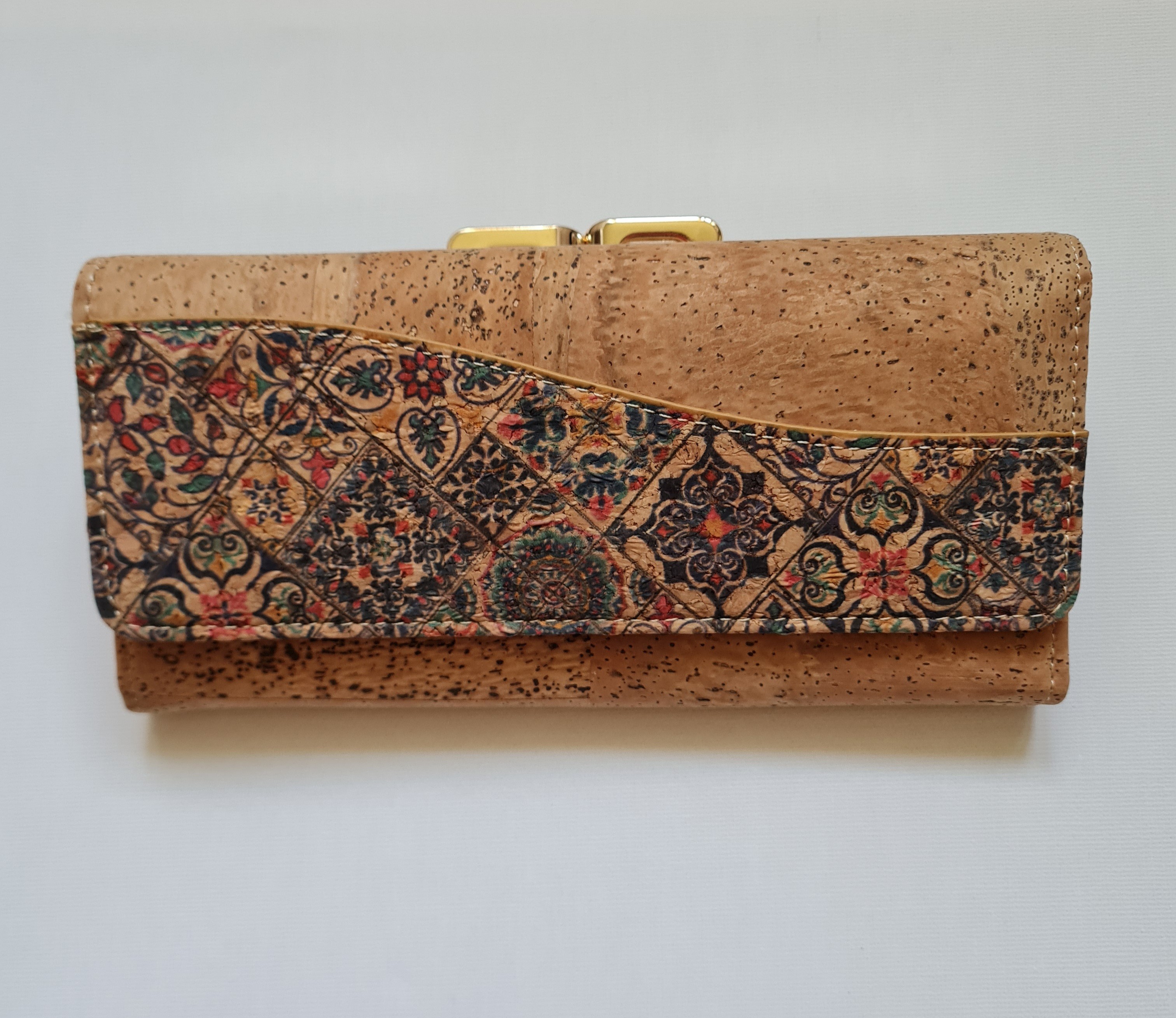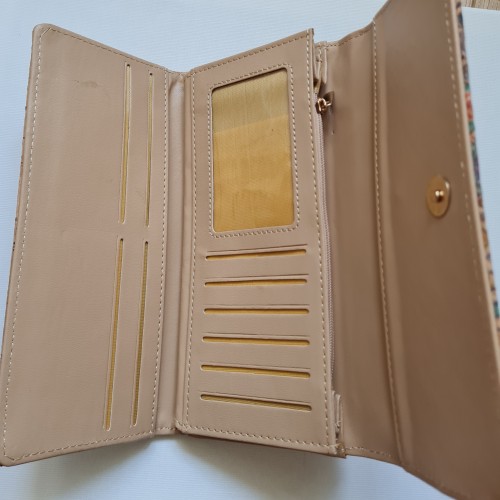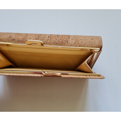Portefeuille avec rabat par pression d'un côté et de l'autre fermeture par clic pour la partie porte monnaie.