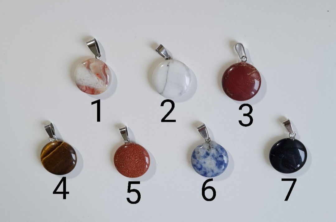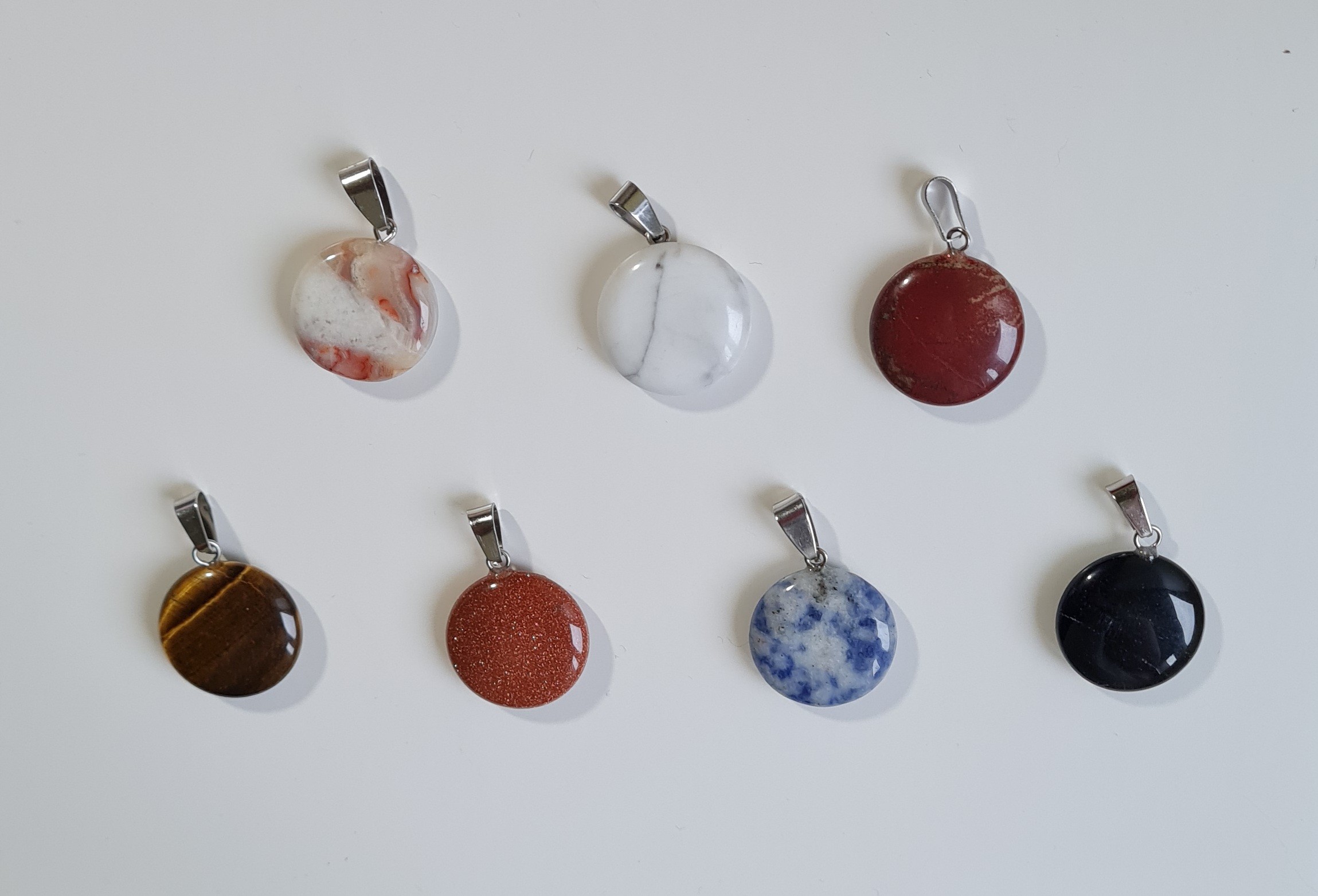 Pour un bien être tout en douceur avec la lithothérapie. Pendentifs ronds de 2 cm